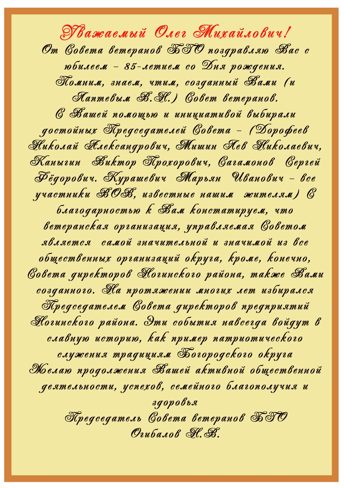 У Почетного гражданина БГО Волчкова Олега Михайловича юбилей