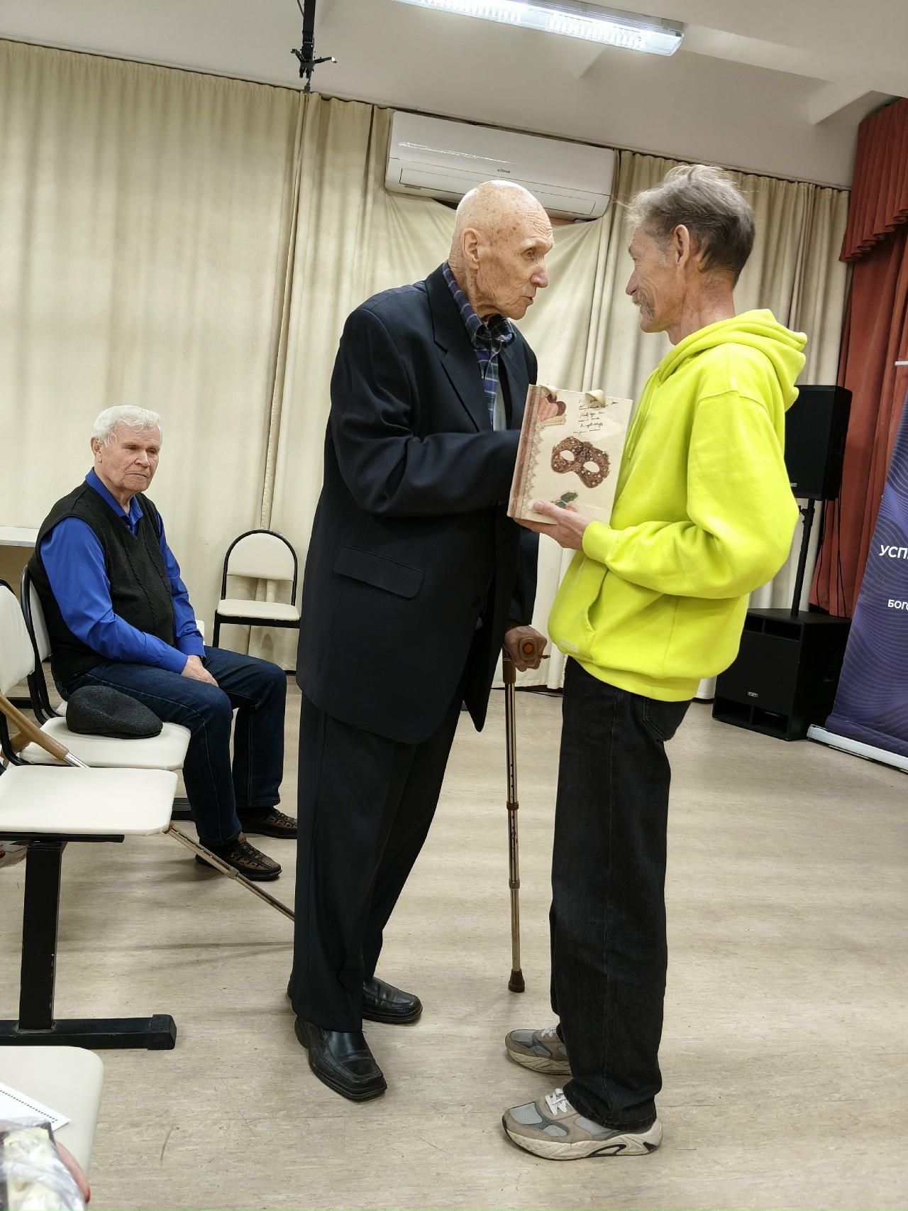 Тепло и сердечно поздравили с днем рождения Глинкина Александра. Вручили ему скромные сувениры.