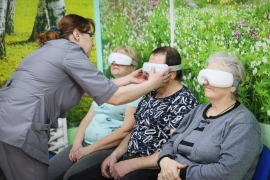 Теперь долголеты могут пройти курс процедур, не выезжая в город. В программе — лечение на аппарате «Алмаг», озокерито- и парафинотерапия, аппаратный массаж для глаз, тела и ног, кислородные коктейли и фиточай.