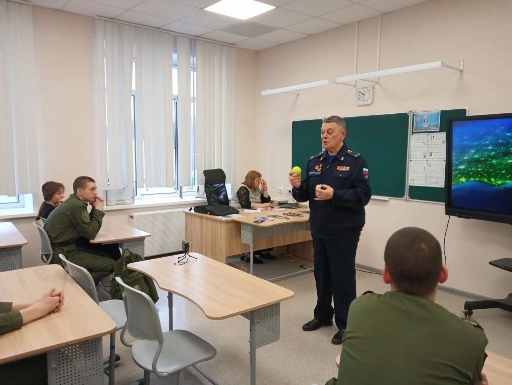 теме освоения космического пространства .Вел Урок ветеран Центра контроля космического пространства (ЦККП ) пп-к в отс. Сборщик Владислав Петрович.Ветеран рассказал ребятам о первом космонавте Юрии Алексеевиче Гагарине, о проблемах.которые испытал космонавт. во время полета.